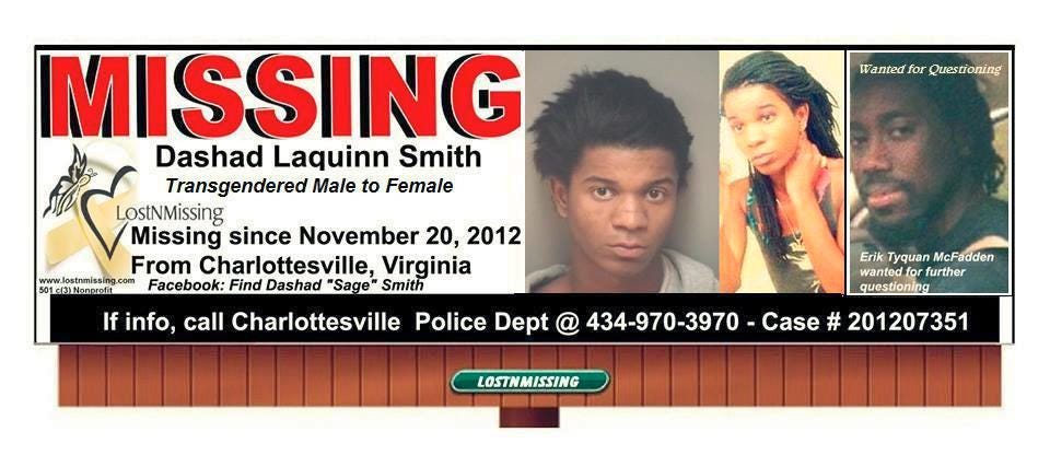 On November 20, 2012, Sage was last seen near West Main Street in Charlottesville.