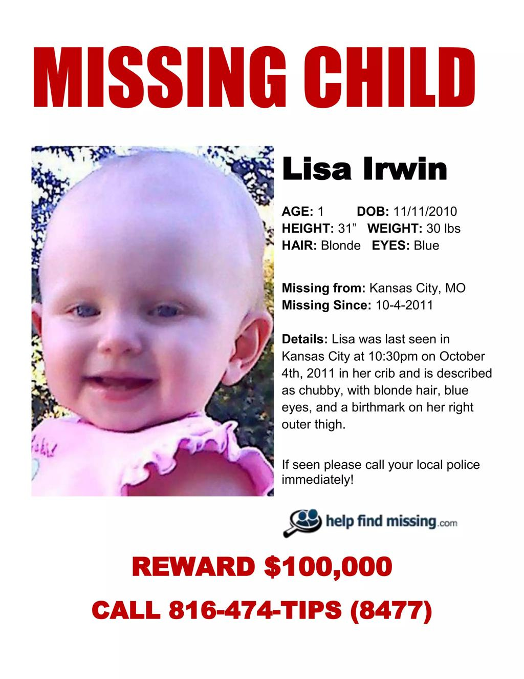 In the early hours of October 4, 2011, 10-month-old Lisa Irwin disappeared from her crib in Kansas City, Missouri.